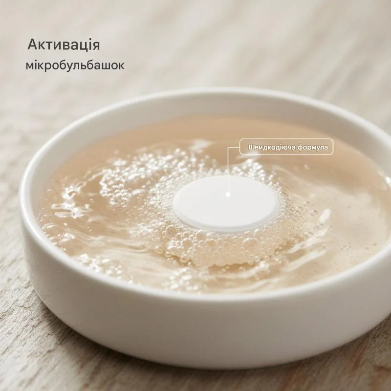 Розчиніть одну таблетку Sweater Revive, дочекайтесь повного шипіння та розчинення.