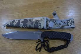 Камуфльовані піхви з кріпленням дозволяють носити ніж на ремені або спорядженні, швидко виймаючи його за необхідності